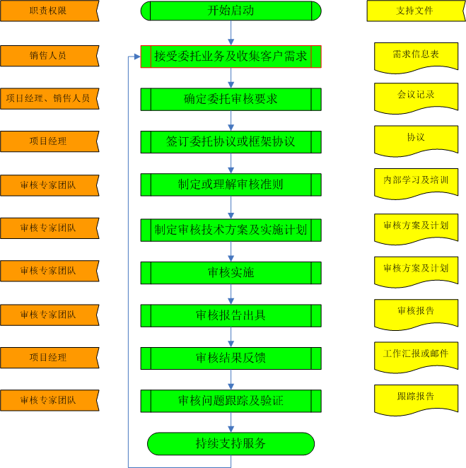 委托審核基于天奇億(北京)管理咨詢有限公司的專業(yè)能力以及客戶的認(rèn)可信任,公司愿意為客戶提供委托內(nèi)部審核服務(wù)以及委托對客戶的供方進(jìn)行審核服務(wù),并提供相應(yīng)的服務(wù)報告和改進(jìn)建議;根據(jù)客戶的要求我們也愿意提供后續(xù)的跟蹤及驗證支持。從第三方視角去發(fā)現(xiàn)不容易發(fā)現(xiàn)的問題,進(jìn)而提升客戶管理水平,降低客戶的風(fēng)險。流程如下: